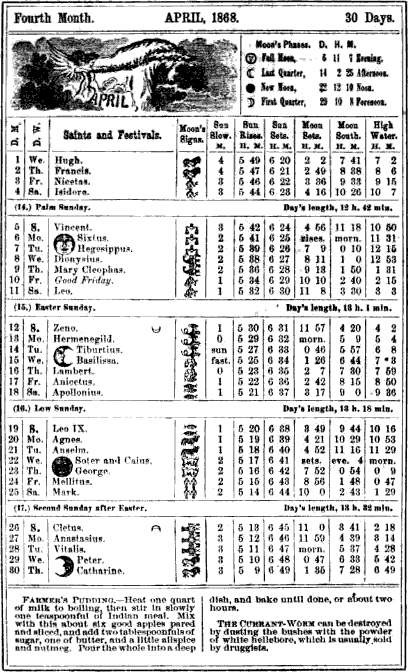 Almanack for April 1868